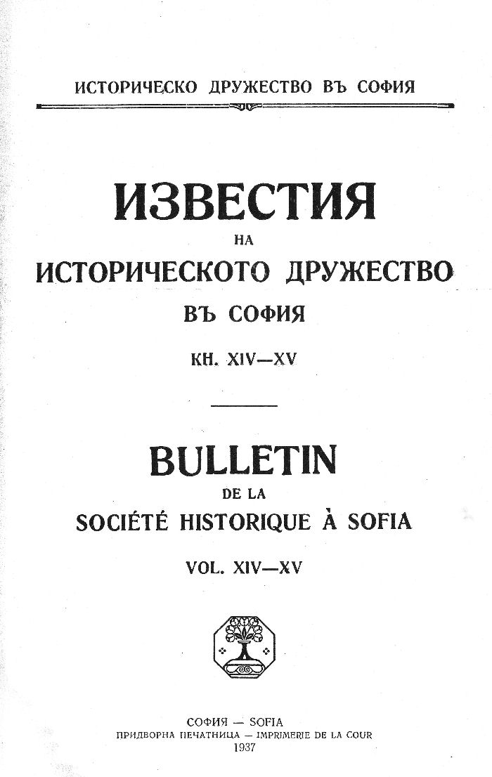 Известия на Историческото дружество въ София, кн. XIV—XV, с. 151-171 Придворна печатница, София 1937