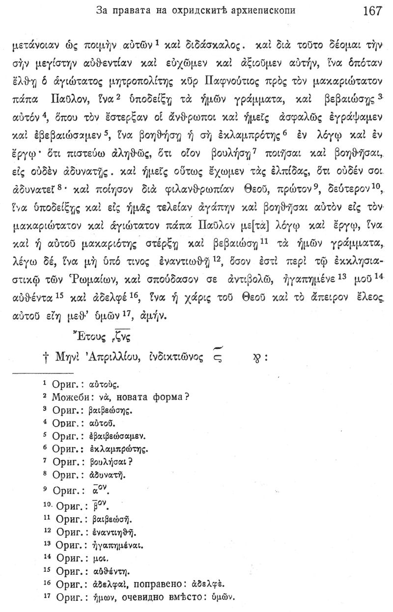 2. Pélissier, op. c., p. 481. — За сѫщитѣ документи намеква и mons. Angelo Mercati, Documenti pontifici per il rito e l'O riente bizantino [отпечатъкъ отъ : Studion. Bollettino delle Chiese di rito bizantino, VIII. 1931], p. 5, n. 1. Статията съдържа, между другото, два интересни документи въ връзка съ отношенията между охридскага архиепиекопия и римската Курия.