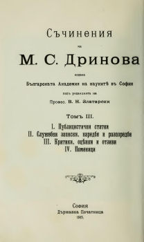 Томъ III. I. Публицистични статии, II. Служебни записки, наредби и разпоредби, III. Критики, оцѣнки и отзиви, IV. Поменици
