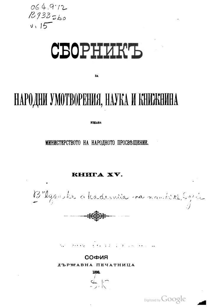 Сборникъ за Народни Умотворения, Наука и Книжнина, Книга XV, 393-448