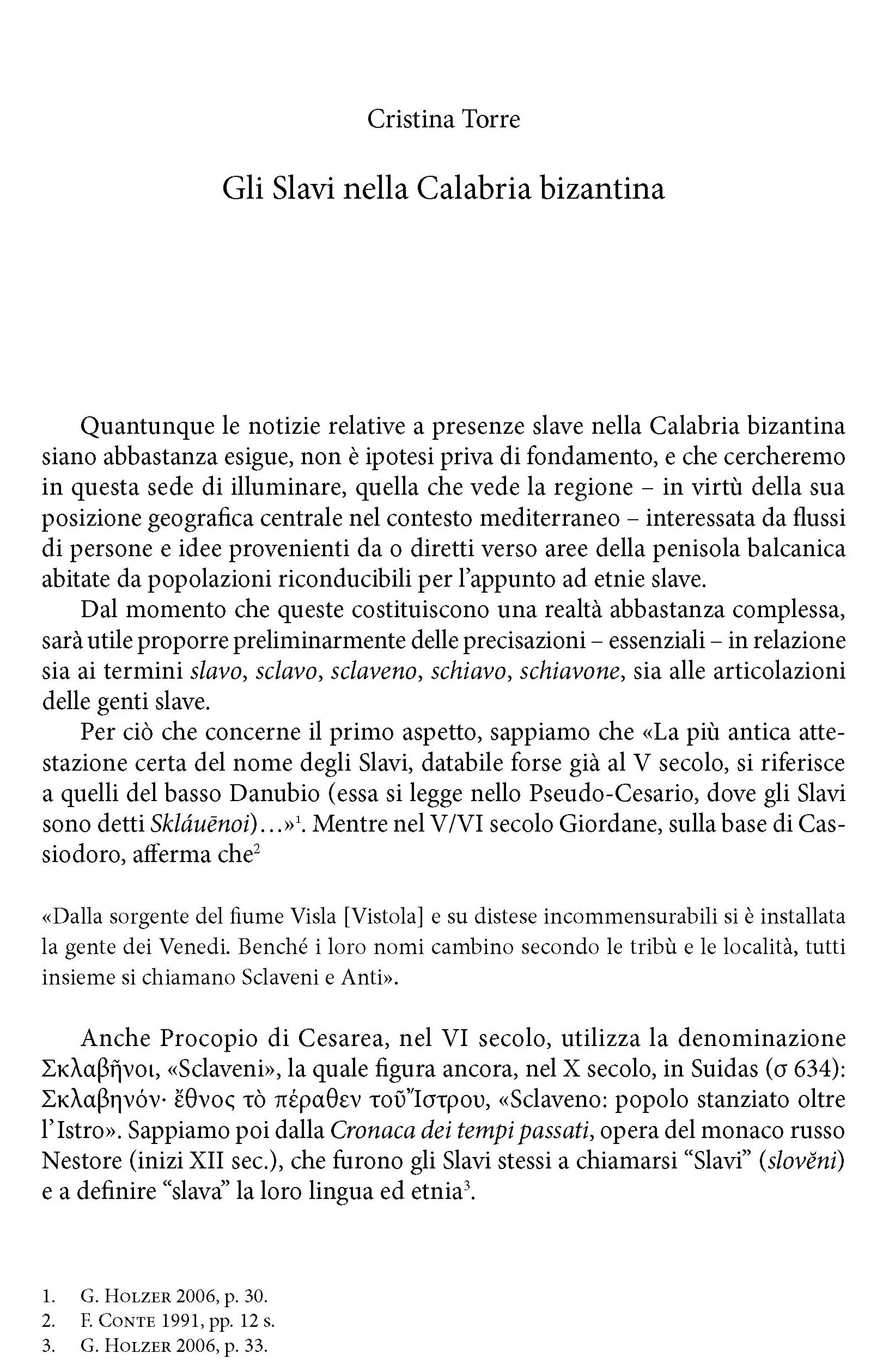Quantunque le notizie relative a presenze slave nella Calabria bizantina siano abbastanza esigue, non è ipotesi priva di fondamento, e che cercheremo in questa sede di illuminare, quella che vede la regione – in virtù della sua posizione geografica centrale nel contesto mediterraneo – interessata da flussi di persone e idee provenienti da o diretti verso aree della penisola balcanica abitate da popolazioni riconducibili per l’appunto ad etnie slave.