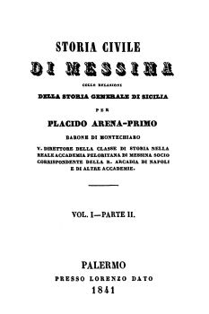 per Placido Arena-Primo, Barone di Montechiaro V. direttore della classe di storia nella Reale Accademia Peloritana di Messina socio corrispondente della R. Arcadia di Napoli e di altre accademie.