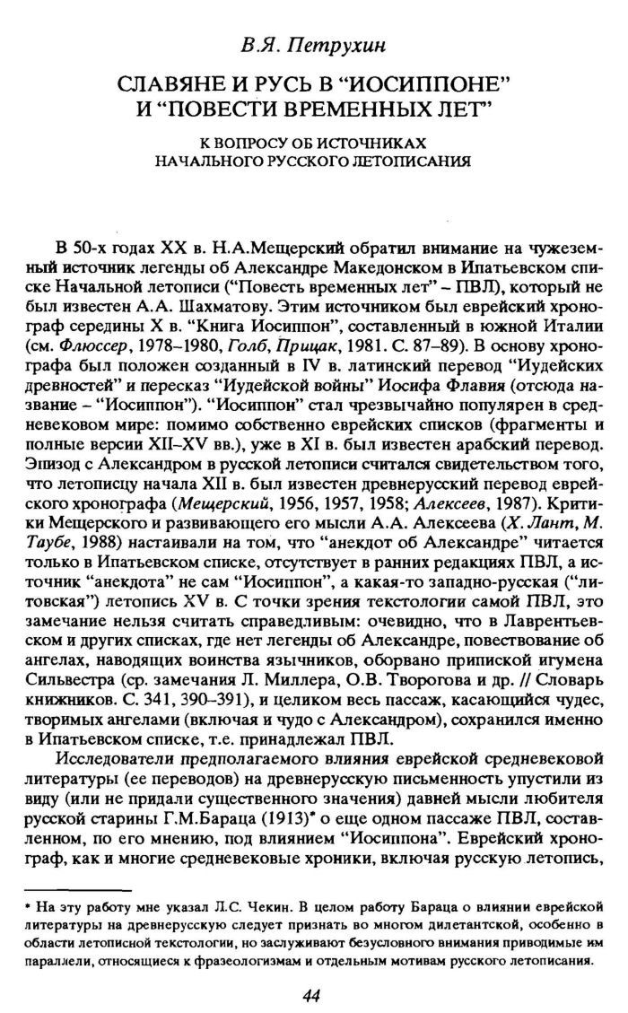 *. На эту работу мне указал Л.С. Чекин. В целом работу Бараца о влиянии еврейской литературы на древнерусскую следует признать во многом дилетантской, особенно в области летописной текстологии, но заслуживают безусловного внимания приводимые им параллели, относящиеся к фразеологизмам и отдельным мотивам русского летописания.