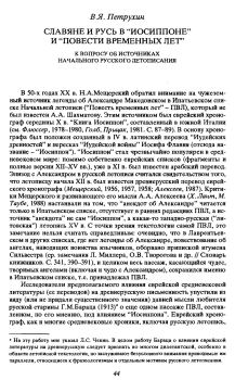 Характерная особенность, которая объединяет интересующие нас списки “Иосиппона” и ПВЛ, заключается в том, что русь ни там, ни там не причислена к славянам (собственно, и в “Баварском географе” русь - ruzzi - отделена от славянских племен упоминанием хазар - ср. Мельникова, Петрухин, 1989. С. 35). Отождествление современной летописцу Руси XII в. с полянами есть результат ученой работы русского книжника, показавшего, что современный ему русский язык - это язык “словенских” книг: поэтому он и “подверстал” русь к мораве и др. западным славянам (отождествив полян киевских с полянами “ляшскими”), ср. также упоминание “русских письмен” (вместо сурских - сирийских в “Житии Константина”, гл. VIII; см. Флоря, 1981. С. 77, комм. с. 115-117) и т.п. Так или иначе, “изначальная” русь - не славянский народ и в ПВЛ, и в “Иосиппоне”.