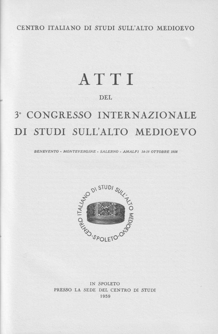 Atti del 3° Congresso internazionale di studi sull’alto medioevo Benevento - Montevergine - Salerno - Amalfi 14-18 ottobre 1956