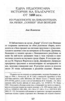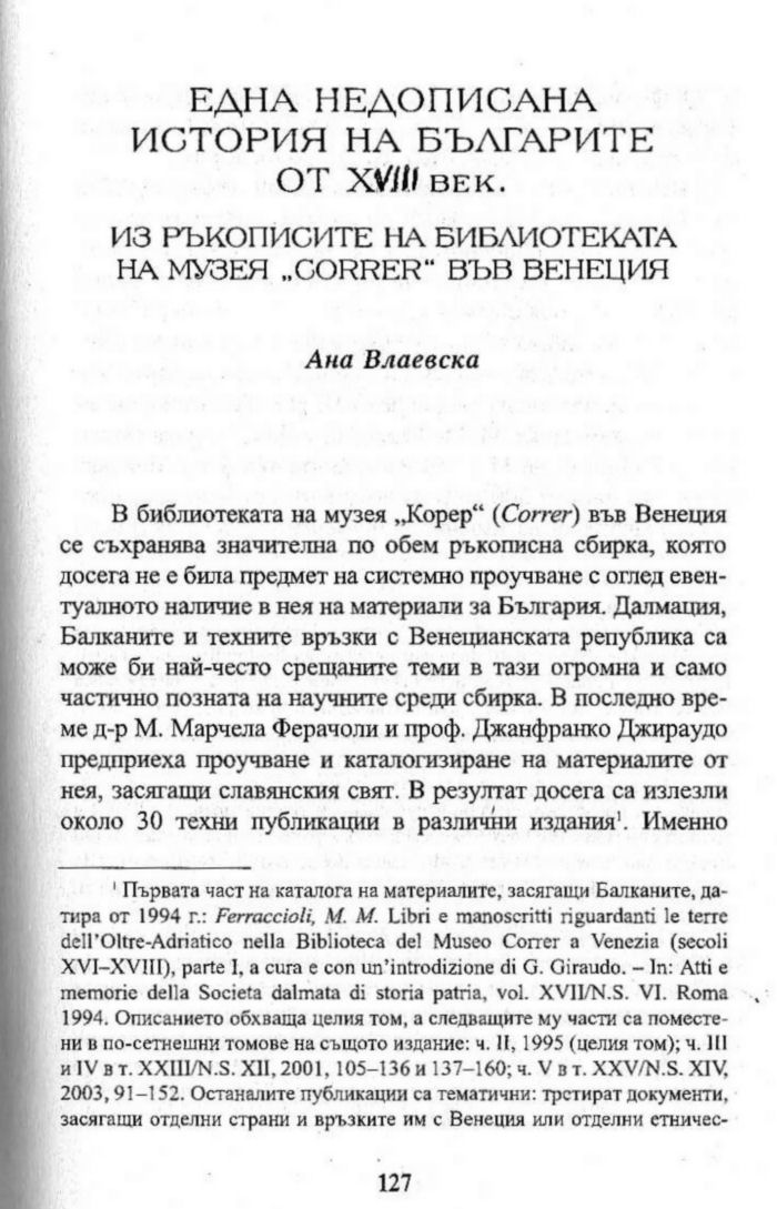 Една недописана история на българите от XVIII век. Из ръкописите на библиотеката на музея „Correr” във Венеция