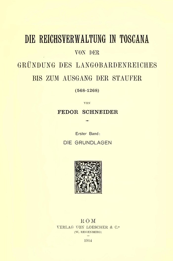 Die Reichsverwaltung in Toscana von der Gründung des Langobardenreiches bis zum Ausgang der Staufer (568-1268) Erster Band: Die Grundlagen