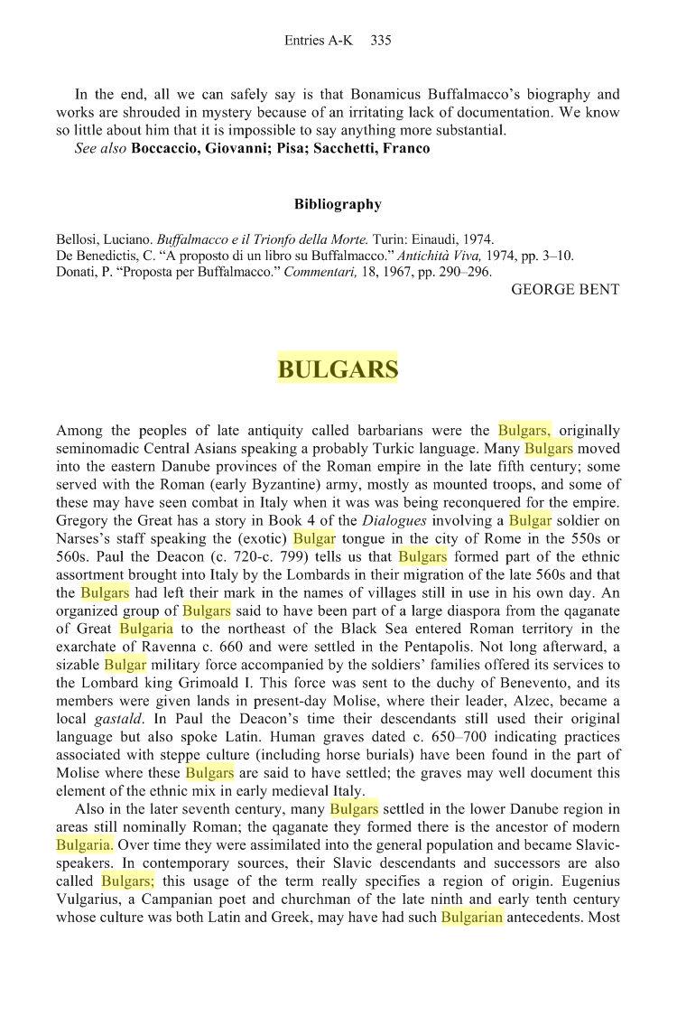 Petkanov, Ivan. “Bulgarus nell'onomastica e nella toponomastica italiana” Lingua Nostra, 21, 1960, pp. 17-20.