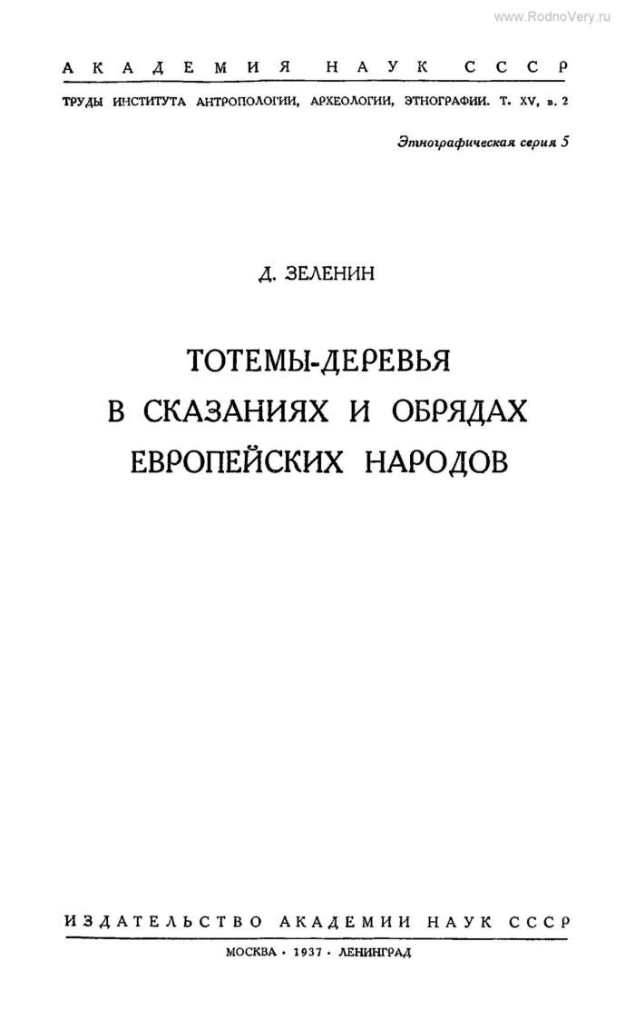 1. Д. К. Зеленин, Тотемический культ деревьев у русских и у белоруссов ИОН, 1933, 620.