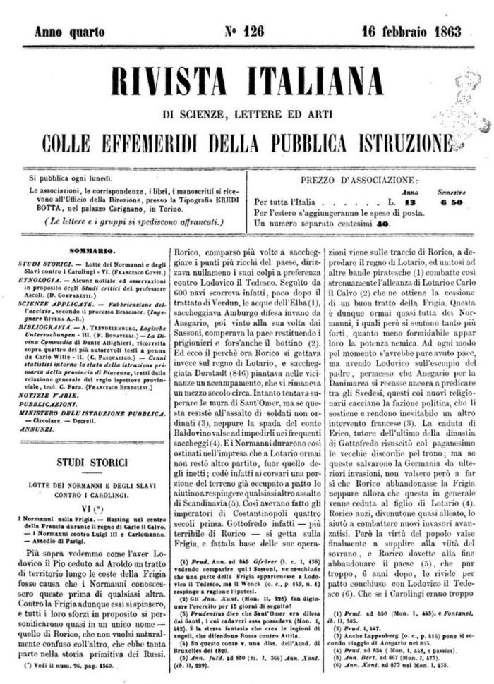 II. Intorno agli Slavi del napoletano, notizie comunicate dal professore Ascoli (Rivista italiana, № 140, 1863, 329-330)