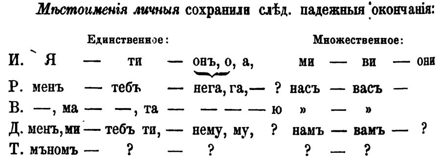 Д. менъ, ми — тебъ ти, — нему, му, ?