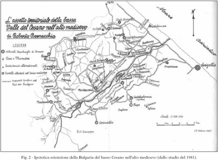 In tale contesto lo stanziamento dei Protobulgari nel basso Cesano appare altamente probabile, quantunque non ci si possa nascondere che alcuni quesiti rimangono aperti, quelli precisamente riguardanti i tempi e i modi della loro venuta, la natura di circoscrizione altomedievale della zona e dei poteri pubblici che potevano esercitarvisi.