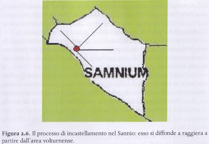 Figura 2.6. Il processo di incastellamento nel Sannio: esso si diffonde a raggiera a partire dall’area volturnense.