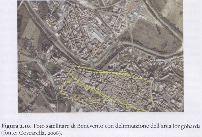 - Figura 2.10. Foto satellitare di Benevento con delimitazione dell’area longobarda