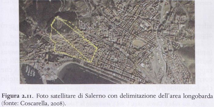 - Figura 2.11. Foto satellitare di Salerno con delimitazione dell’area longobarda