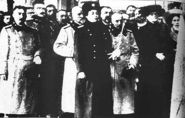 опълчението преминават начело на дружините в церемониален марш. След