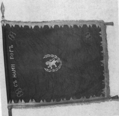 кръст, наподобяващ ордена „За храбростъ". В четирите ъгъла на знамето