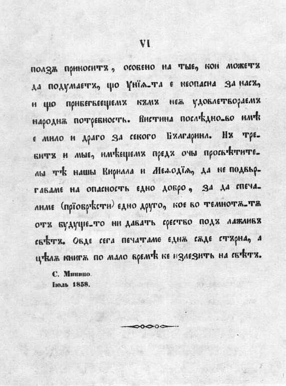 След премахването ... на матерния ни език, за пръв път вече тази година започна българската младеж да сучи, от гърдите на истинската ни майка, а свещениците да четат евангелието в църквите на български език".