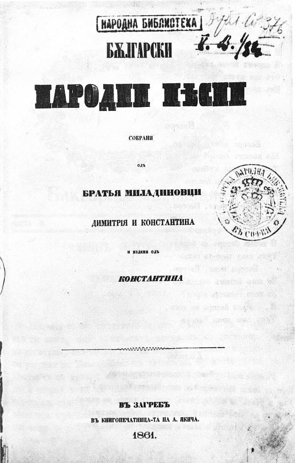 — Из писмото на Димитър Миладинов до Константин Робев, писано на 14 юли 1857 г.: „Брат ми също Ви предава чрез мен своите почитания ... Към събраните от него български песни и аз изпратих немалко български песни, които събрах тук и от Велес. Очаквам и от Източна Македония, като от Кукуш и Дойран, които той ще издаде в Москва и които никой от Македоно-България не е издал. Събирам също пословици, гатанки и ако е възможно, и приказки. Може би се смееш!"
