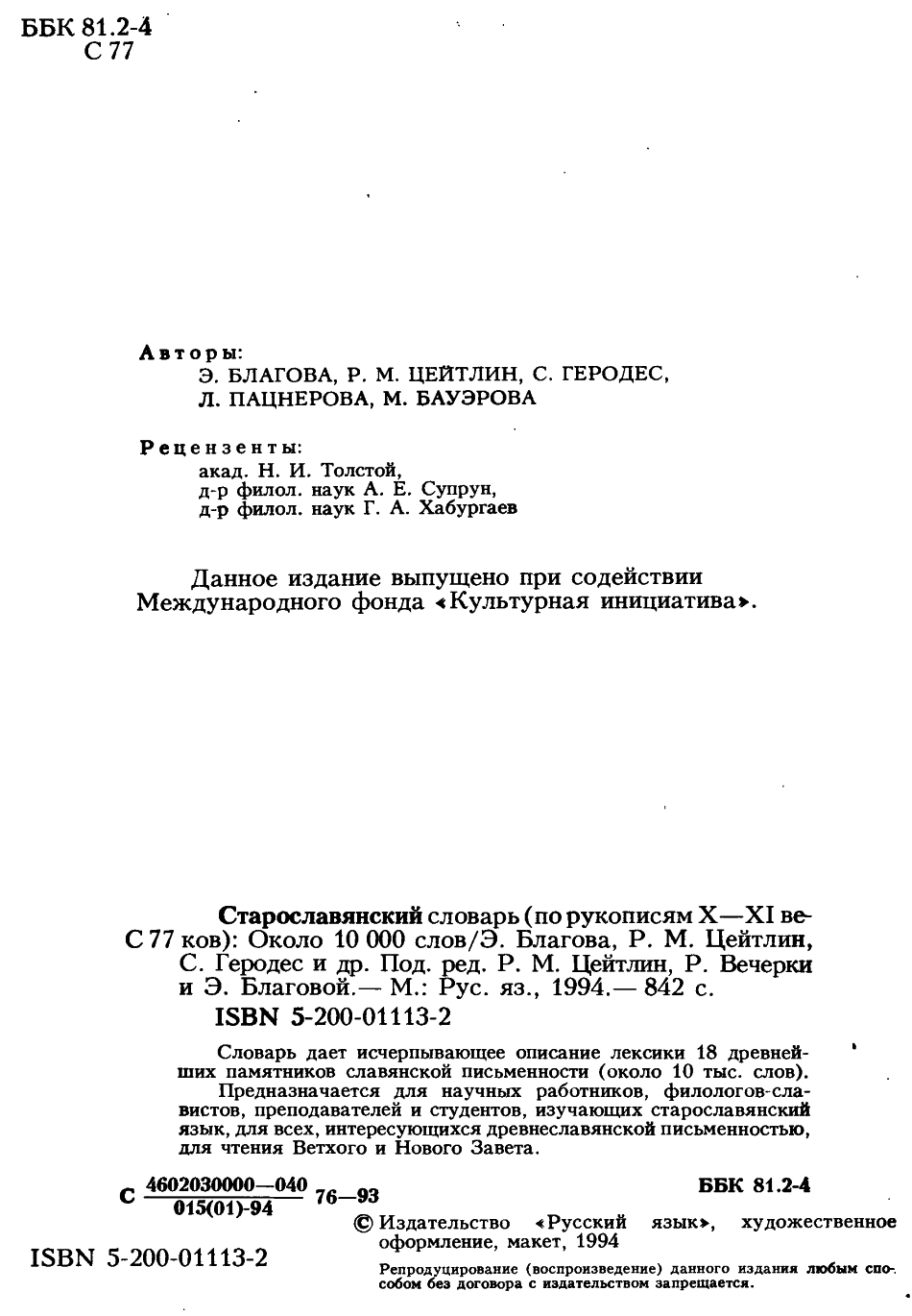 R. Cejtlin i dr. - Staroslavjanskij slovar' (1994)