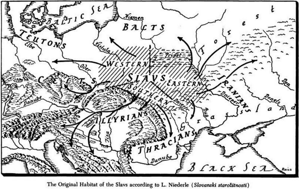 It is agreed that the primitive Slavs must have lived for a long period as neighbors of the Germans, the Balts, and the Thracians, who together with the Slavs, the Celts, the Proto-Italians, Illyrians and Greeks, formed the European branch of the great Indo-European group of nations. No one harbors any doubts about the primitive habitat of the Germans in southern Scandinavia, Denmark and the islands and part of the coast between