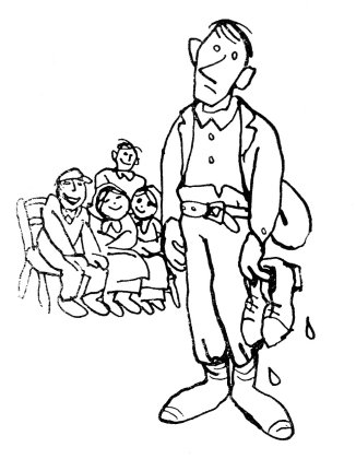 Ваню рипна като опарен и без да продума, изтърча към кухнята и захлопа. След малко се изтъпани в стаята, дето спахме. И пак нищо не казва — само държи с дилаф моите папуце. Познах ги по железцата. Чак сега се сетих за какво е било това Ванюво търчене.