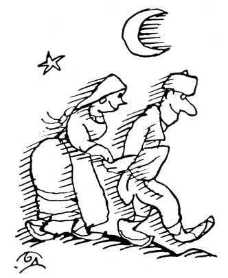 Заведох я. Я напред, Рада след мене. Ага заизкачвахме баиря, Рада зе да хрипе. Повървехме още малко, Рада пак зе да хрипе. „Брях, — реках си на ум, — дали не е келебечива?” [*]