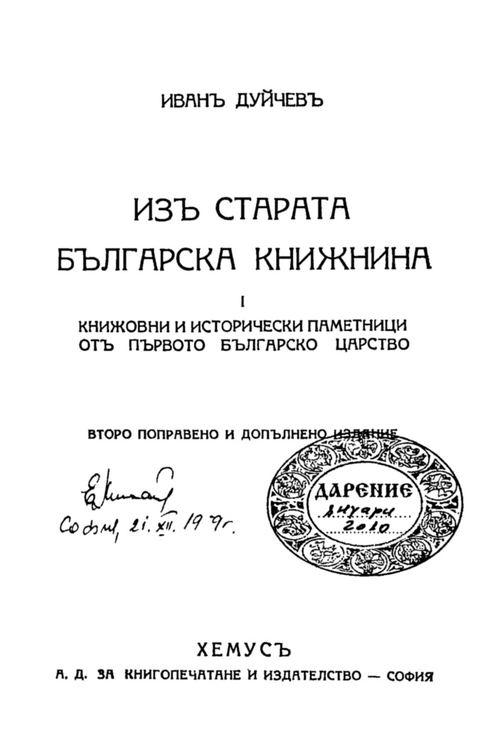 Изъ старата българска книжнина I. Книжовни и исторически паметници отъ Първото българско царство