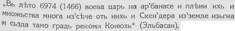 летописец-славянинъ [1]. Условия для массового переселения в Македонию были в то время неблагоприятны. Наоборот, турецкая власть переселяла болгарские семьи из Македонии в Албанию. Так, в 1467 г. турки пригнали в построенный има в Албании город Конюх 15 семей из Скопья.