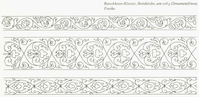 o Batschkovo-Kloster, Beinkirche, um 1083. Ornamentfriese, Fresko 48