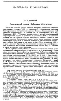 палеографическое описание списка, установить его состав и особенности, а также сопоставить с рукописью 1073 г. Необходимо также попытаться определить протограф списка и его место среди других списков Изборника. Кроме того, важно установить, что дает э,тот список для изучения общественно-политической мысли и культуры Руси рубежа XIV—XV вв. Попытке разрешения этих вопросов и посвящена настоящая статья.