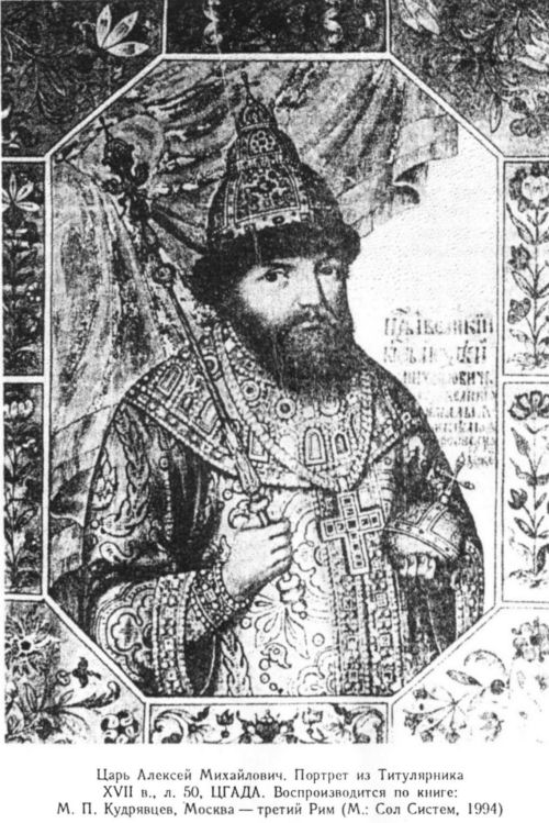 Царь Алексей Михайлович. Портрет из Титулярника XVII в., л. 50, ЦГАДА.