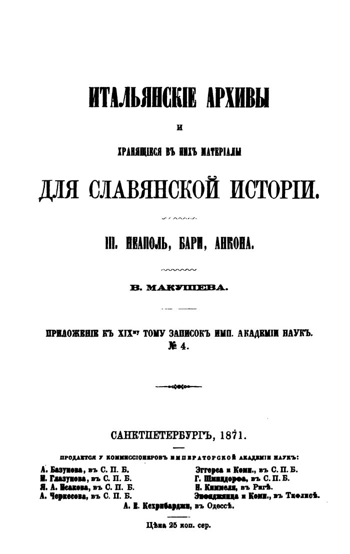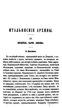 Итальянскіе архивы и хранящіеся въ нихъ матеріалы для славянской исторіи. III. Неаполь, Бари, Анкона.